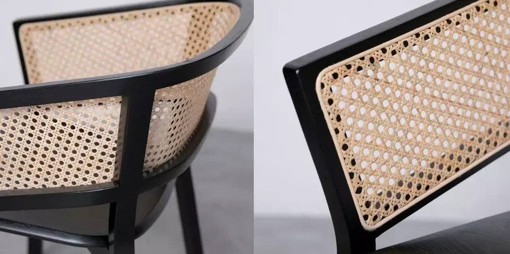框架奢侈地選用無垢實木打造,堅固中帶著韌性,為日常生活帶來一份踏實的安心感。背部柔和的曲線,與職人手工悉心編織的藤編相互輝映,為空間增添了既高雅又溫潤的面貌。